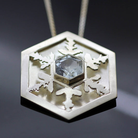 JS Aquamarine In Sterling Silver Hand Pierced Large Snowflake Necklace