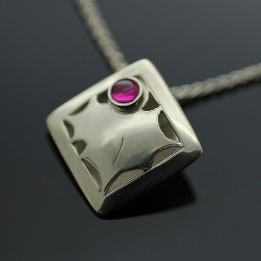 JS Cabochon Cut Ruby In Sterling Silver Hand Pierced Holly Pendant