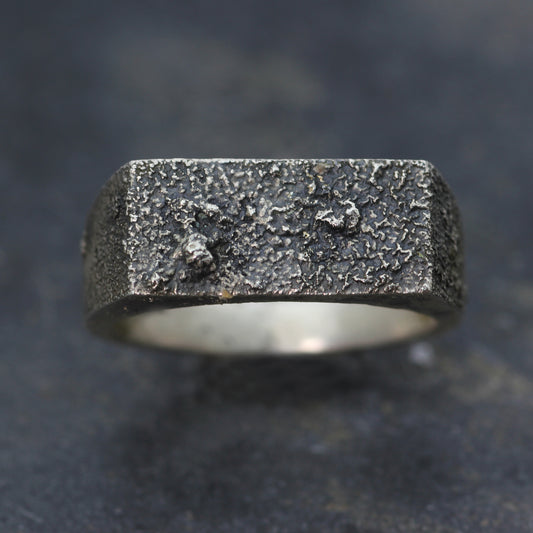 PP Rectangular Textured Silver Signet Ring