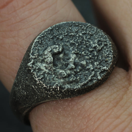 PP Oval Textured Silver Signet Ring