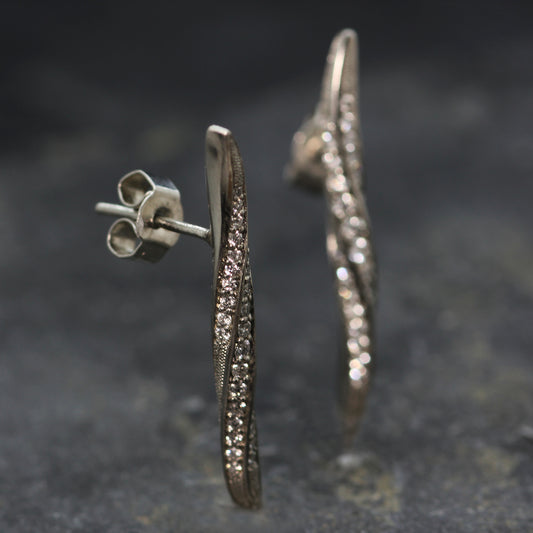 PP Diamond and Platinum reticulated Silver stud earrings