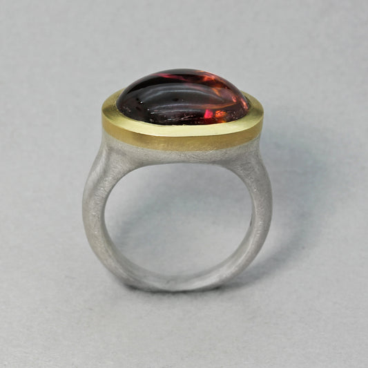 PP Silver and 18ct Gold Cabochon Pink Tourmaline Ring