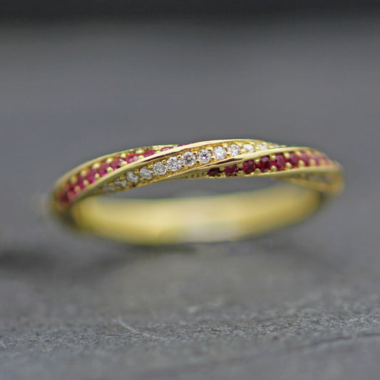 CANDY TWIST RUBY & DIAMONDS SET IN 18 YELLOW GOLD HALF ETERNITY RING