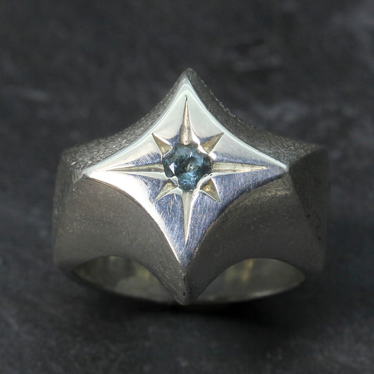 KS Blue Tourmaline & Silver Star Set Signet Ring