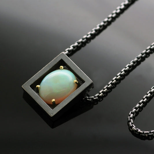 CABOCHON CUT 4.23CT OPAL SET IN 18CT YELLOW GOLD & STERLING SILVER PENDANT