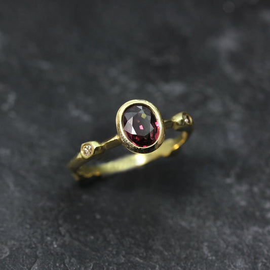 K&S Red Sapphire and Diamond Ring in 18ct Yellow Gold
