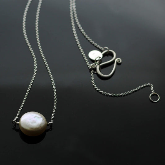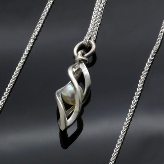 OCEAN CAGE SINGLE AKOYA WHITE PEARL SET IN STERLING SILVER SCULPTED CAGE NECKLACE