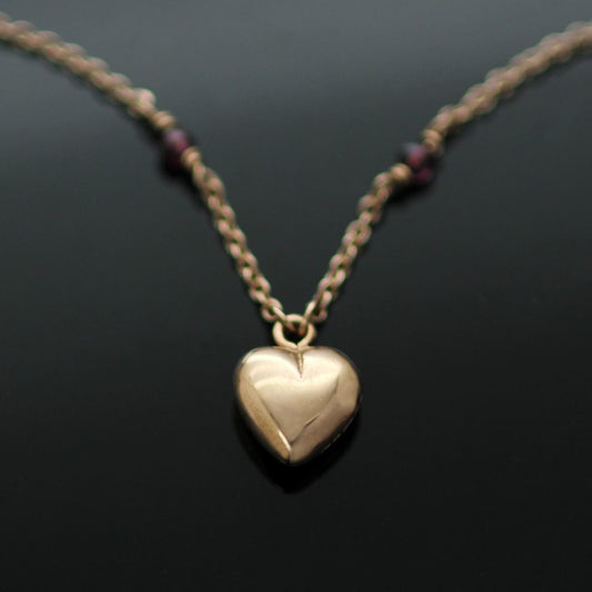 9ct Rose Gold Heart & Garnet Bead Necklace