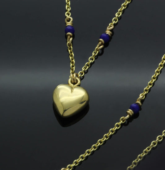 9ct Yellow Gold Heart & Lapis Lazuli Bead Necklace