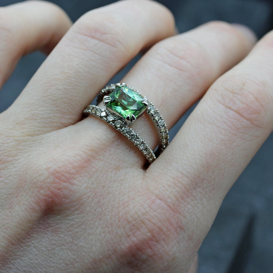 PETITE FINESSE 0.15CT GREEN SAPPHIRE SET IN PLATINUM