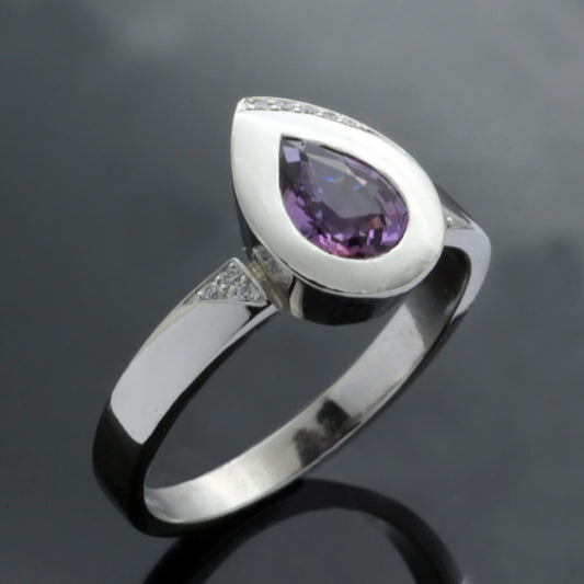 JS PEAR CUT PURPLE SAPPHIRE & DIAMONDS SET IN PLATINUM RING