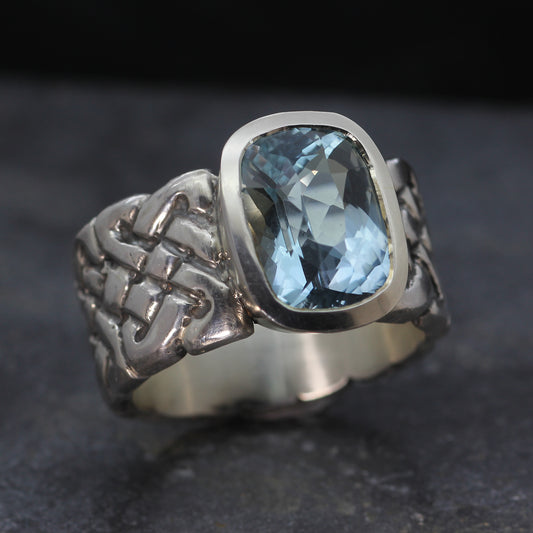 JS Natural Blue Topaz and Silver Celtic Style 'clan' Ring