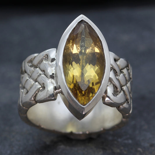 JS Citrine and Silver Celtic Style 'clan' Ring