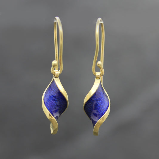 JS 18ct Blue Enamel Vesica Twist Earrings