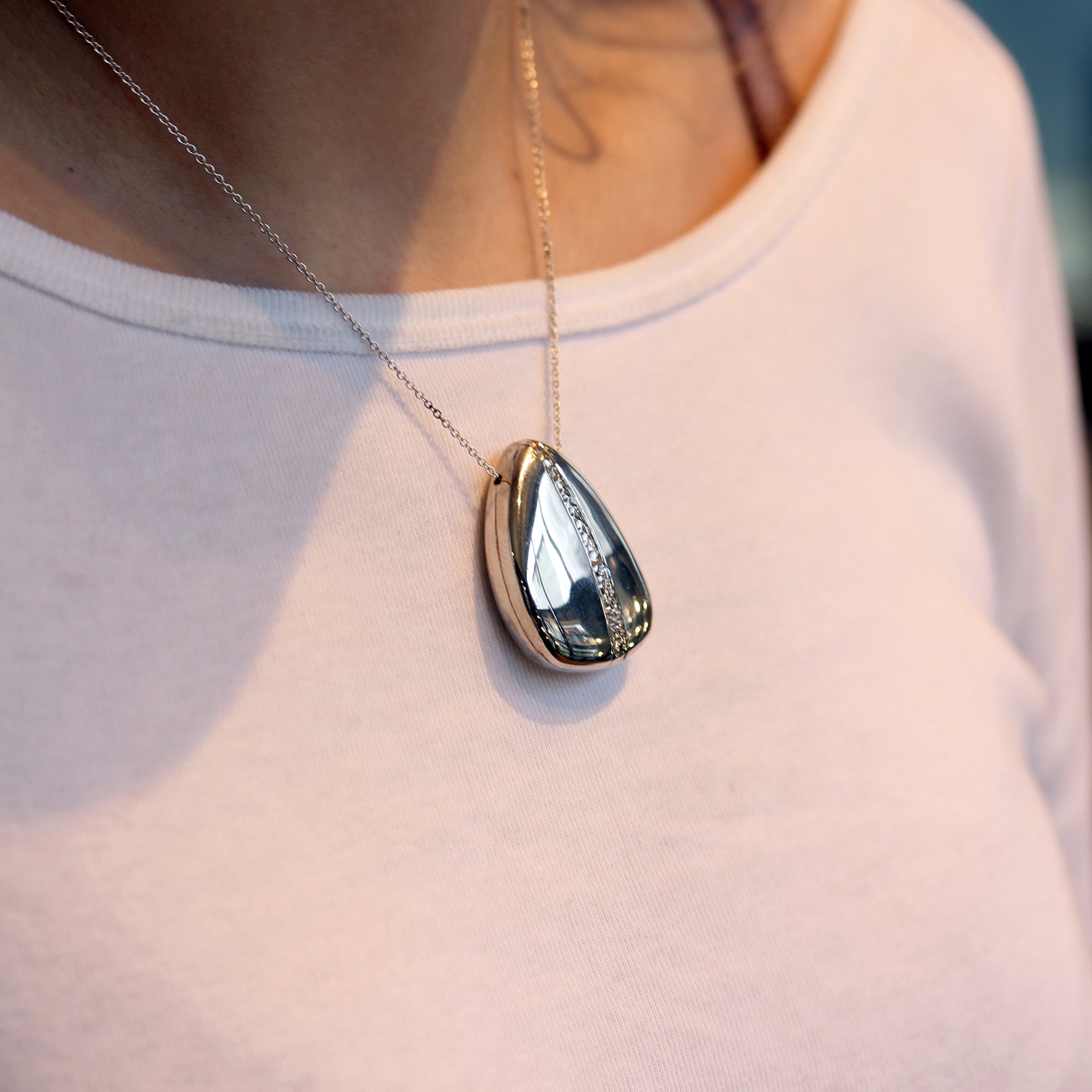 Inspired by the famous pebbles of Brighton Beach, this medium pebble pendant has been handcrafted in silver so you can take a piece of Brighton with you wherever you go.